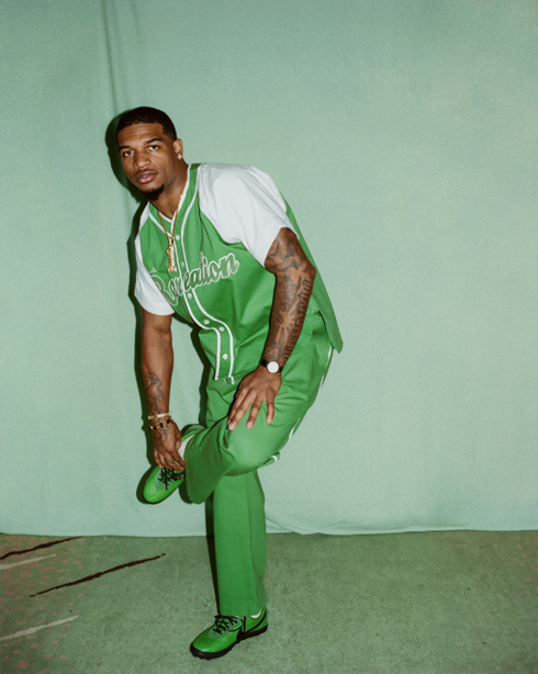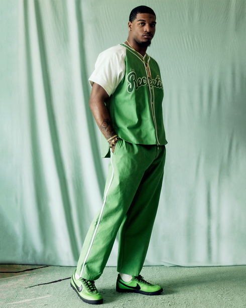 Los tonos verdes de Chlorophyll y Treeline de las elegantes Nike Astrograbber de Emily Adams Bode Aujla se inspiran en un viejo par de zapatillas artesanales de Bill Bowerman que vio durante una visita a la sede de la marca. A partir de esta conmovedora historia personal, la fundadora de la marca de moda de lujo Bode infundió a su diseño colaborativo la nostálgica historia de la legendaria artesanía de Bowerman, creando una estética sofisticada mediante el uso de un branding mínimo y Swooshes negros profundos, a la vez que añadía un cordón dorado en forma de balón de fútbol americano como elegante homenaje a la herencia deportiva de la silueta. El carismático receptor de la NFL Ja'Marr Chase presentó la zapatilla en una elegante campaña de lanzamiento antes de exhibir su aspecto atemporal y su atractivo encanto retro en el desfile de moda de la GQ Bowl de Nueva Orleans de 2025.